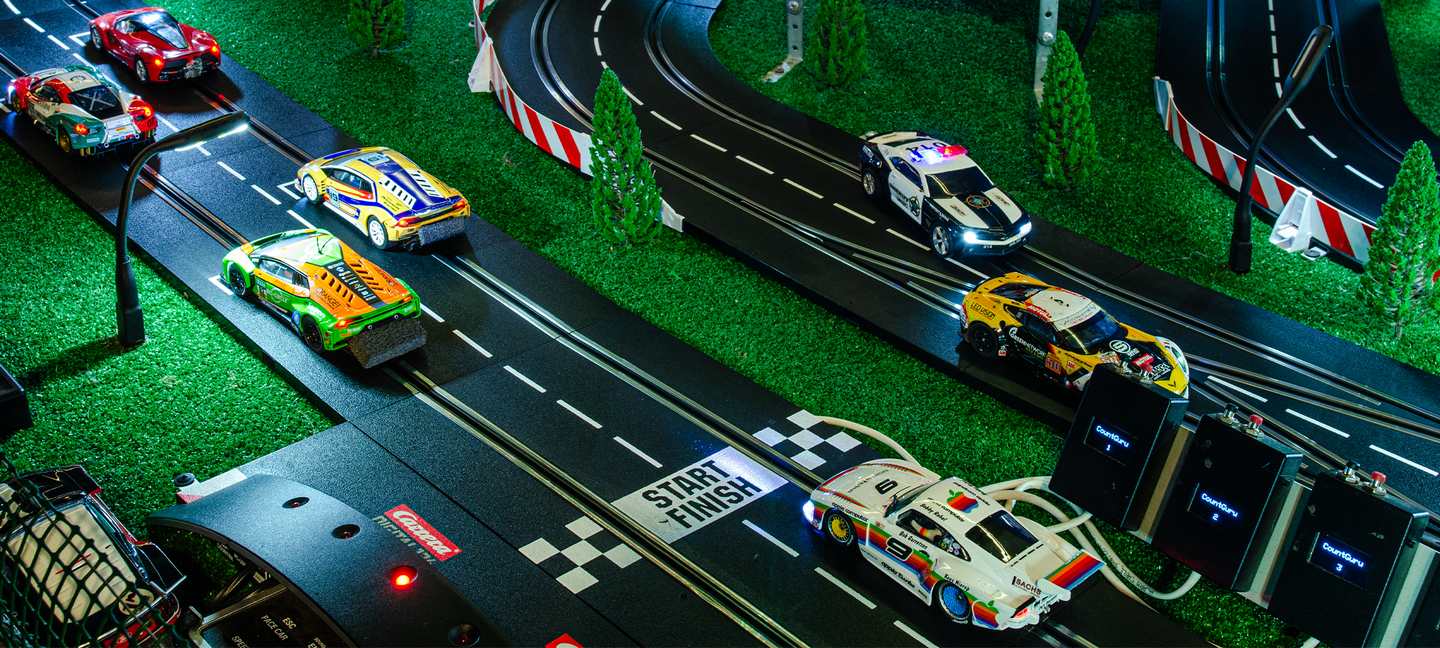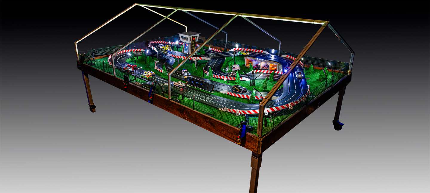 Кроме того, Wild Rally оборудован цифровой системой хронометража и башней позиции участников в текущем заезде, а так же счётчиком кругов, что позволяет определять место каждого участника гонки в реальном времени и определять победителя – что особо привлекательно для проведения полноценных соревнований на наших цифровых Slot треках.